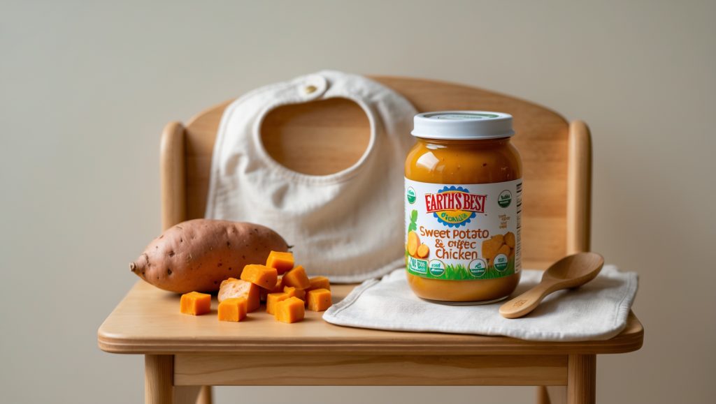 If your baby enjoys Earth’s Best Organic Sweet Potato & Chicken, several other brands offer comparable Stage 2 protein-vegetable blends. Consider: