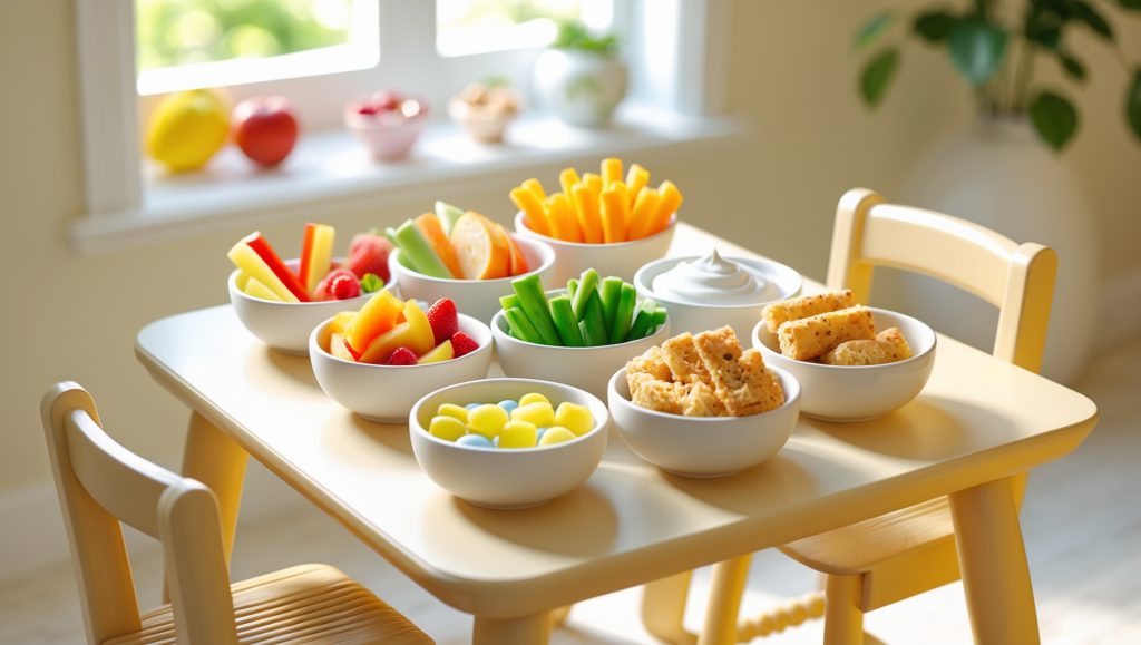 - Offer a variety of shapes: Present snacks in different forms, such as sticks, spirals, or cubes, to keep curiosity high and develop fine motor skills.